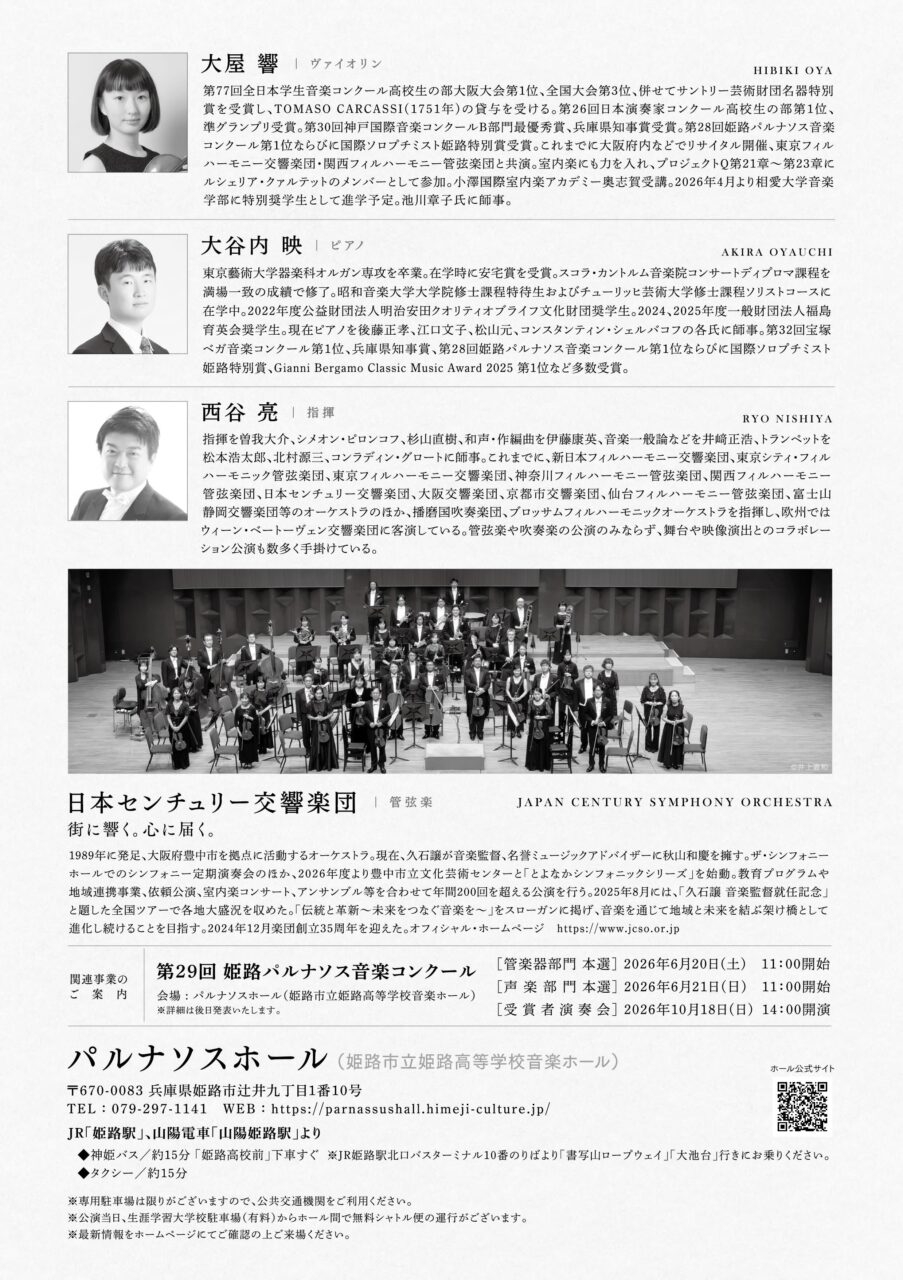 当教室講師のあきら先生は5月17日(日)14時から、兵庫県姫路市にあるパルナソスホールにて第28回姫路パルナソス音楽コンクール受賞記念、コンチェルトinパルナソスに出演されます。